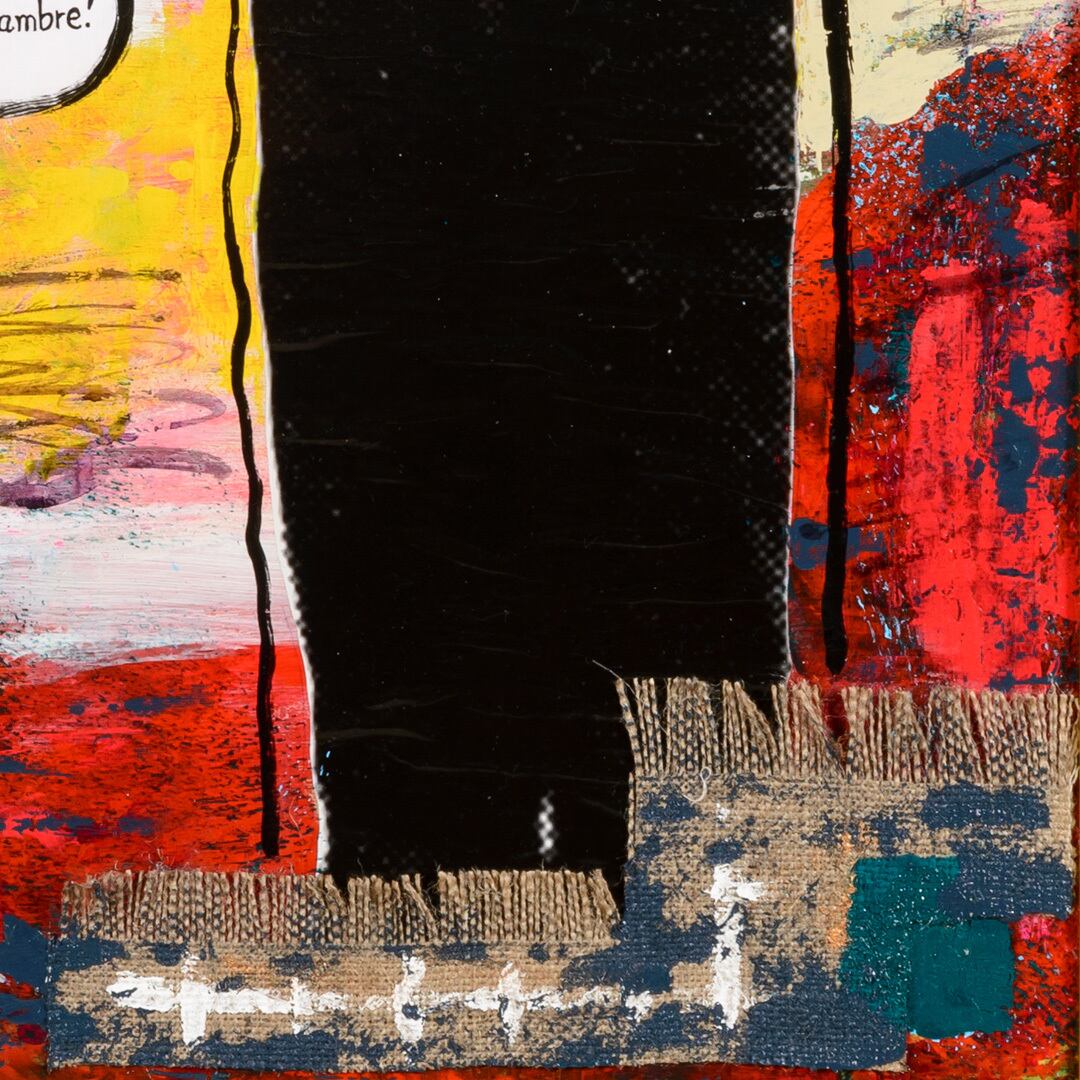 明るく力のある色。赤、白、金色で絵の存在感は抜群。